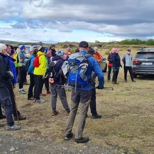 Gönguferð á Bjólfell, 26. maí 2022, og niður hjá Breiðabug. Einstök veðurblíða og frábær þátttaka - 57 manns og 3 hundar. Göngustjórar og leiðsögumenn voru Grettir Rúnarsson og Guðmundur Árnason - fróðir um svæðið og skemmtilegir.