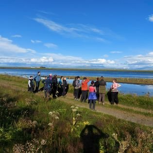Miðvikudagsganga frá Djúpósstíflu að Borg í umsjá Jóhönnu Lilju. Sigurbjartur Pálsson sagði frá stórmerkilegri stíflugerðinni fyrir nær 100 árum síðan - sól og blíða og góður félagsskapur. Gengið um hina frægu Ástarbraut og kíkt við í kartöflugarði á leiðinni - komnar þessar fínu kartöflur - Þykkvabæjar að sjálfsögðu!